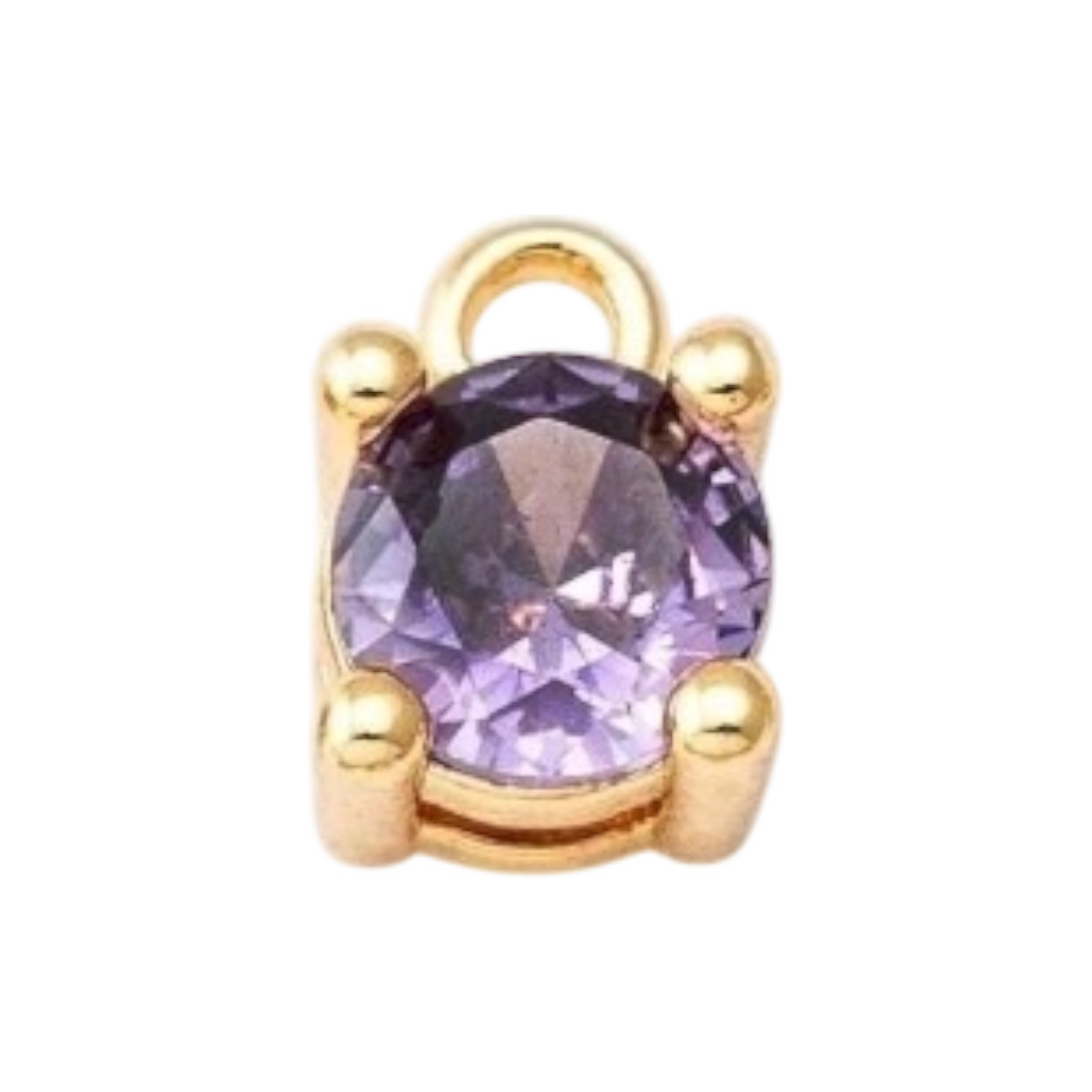 This elegant gold charm with a sparkling crystal center adds a touch of timeless beauty to any jewelry piece. Its simple, bezel-set design makes it perfect for wearing alone for a subtle sparkle or layering with other charms for a more personalized look on a bracelet or necklace.