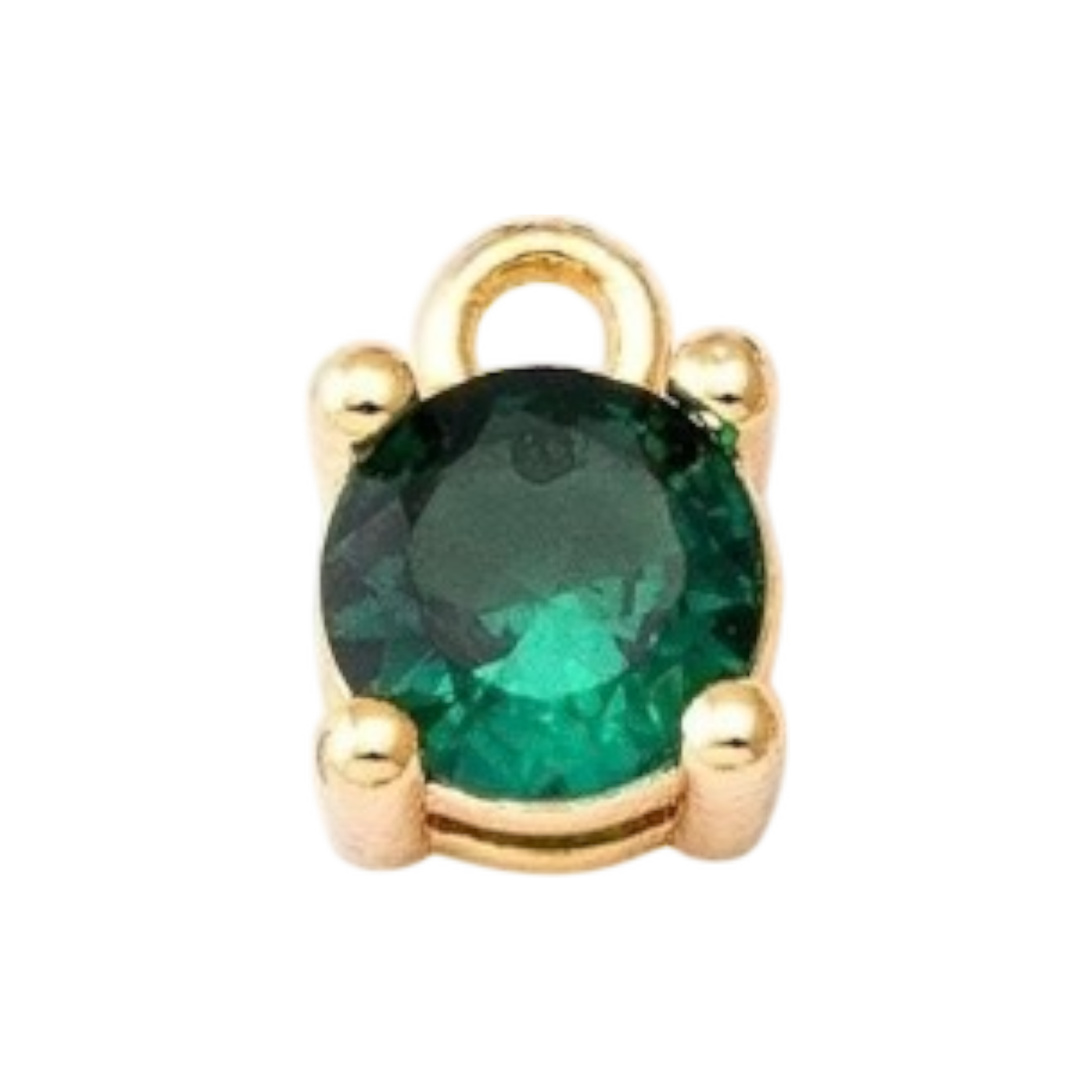 This elegant gold charm with a sparkling crystal center adds a touch of timeless beauty to any jewelry piece. Its simple, bezel-set design makes it perfect for wearing alone for a subtle sparkle or layering with other charms for a more personalized look on a bracelet or necklace.