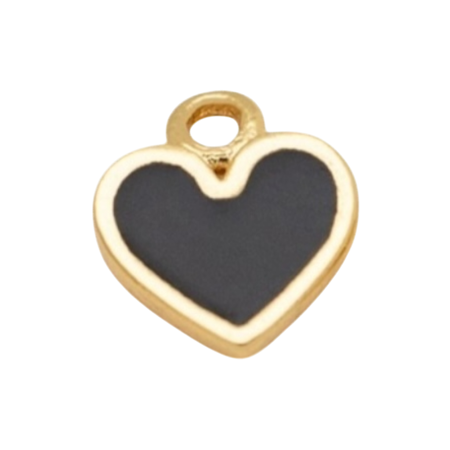Add a modern touch of elegance to your jewelry with this gold and black enamel heart charm. The sleek black enamel contrasts beautifully with the gold border, creating a bold yet classic look. Perfect to wear solo or layered with other charms, this piece brings a refined edge to any bracelet or necklace.
