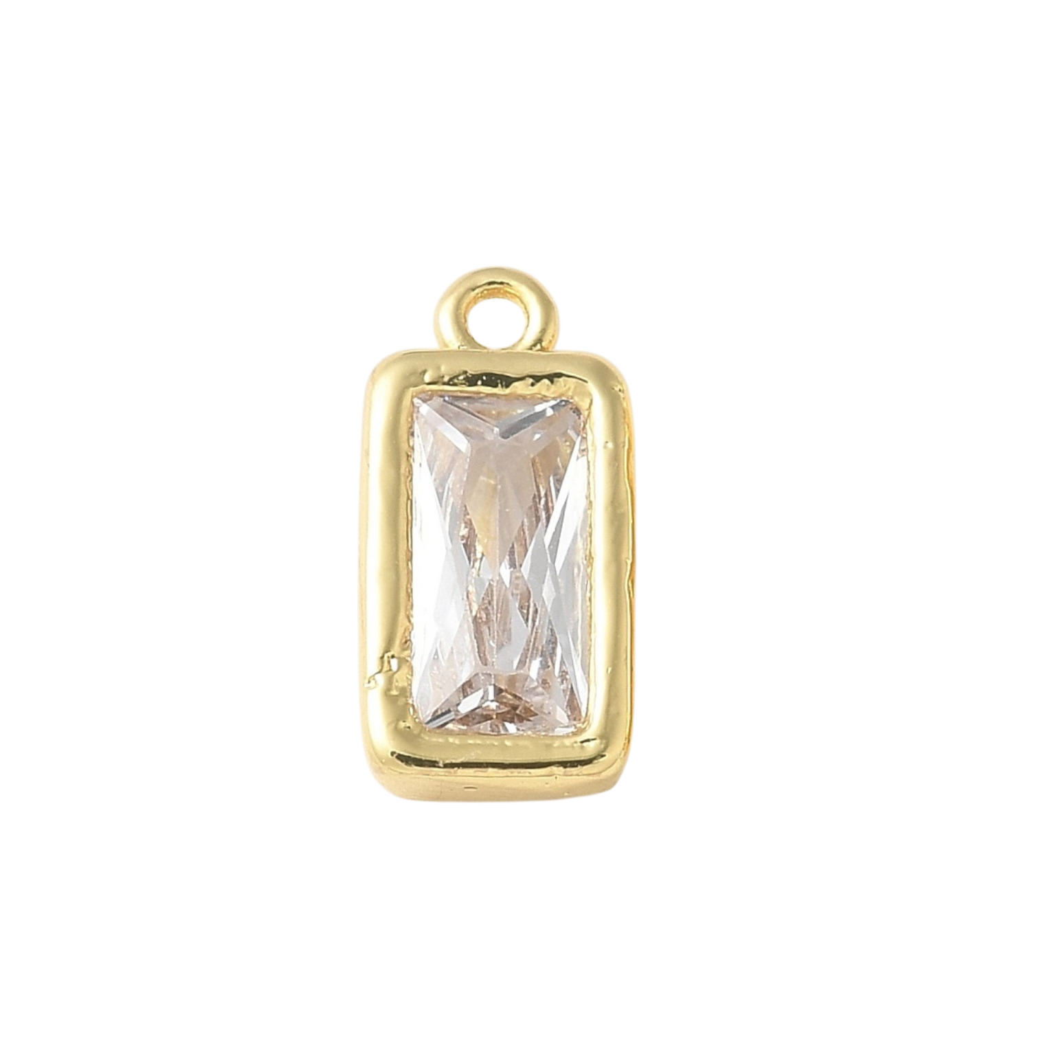 This elegant gold charm with a sparkling crystal center adds a touch of timeless beauty to any jewelry piece. Its simple, bezel-set design makes it perfect for wearing alone for a subtle sparkle or layering with other charms for a more personalized look on a bracelet or necklace.