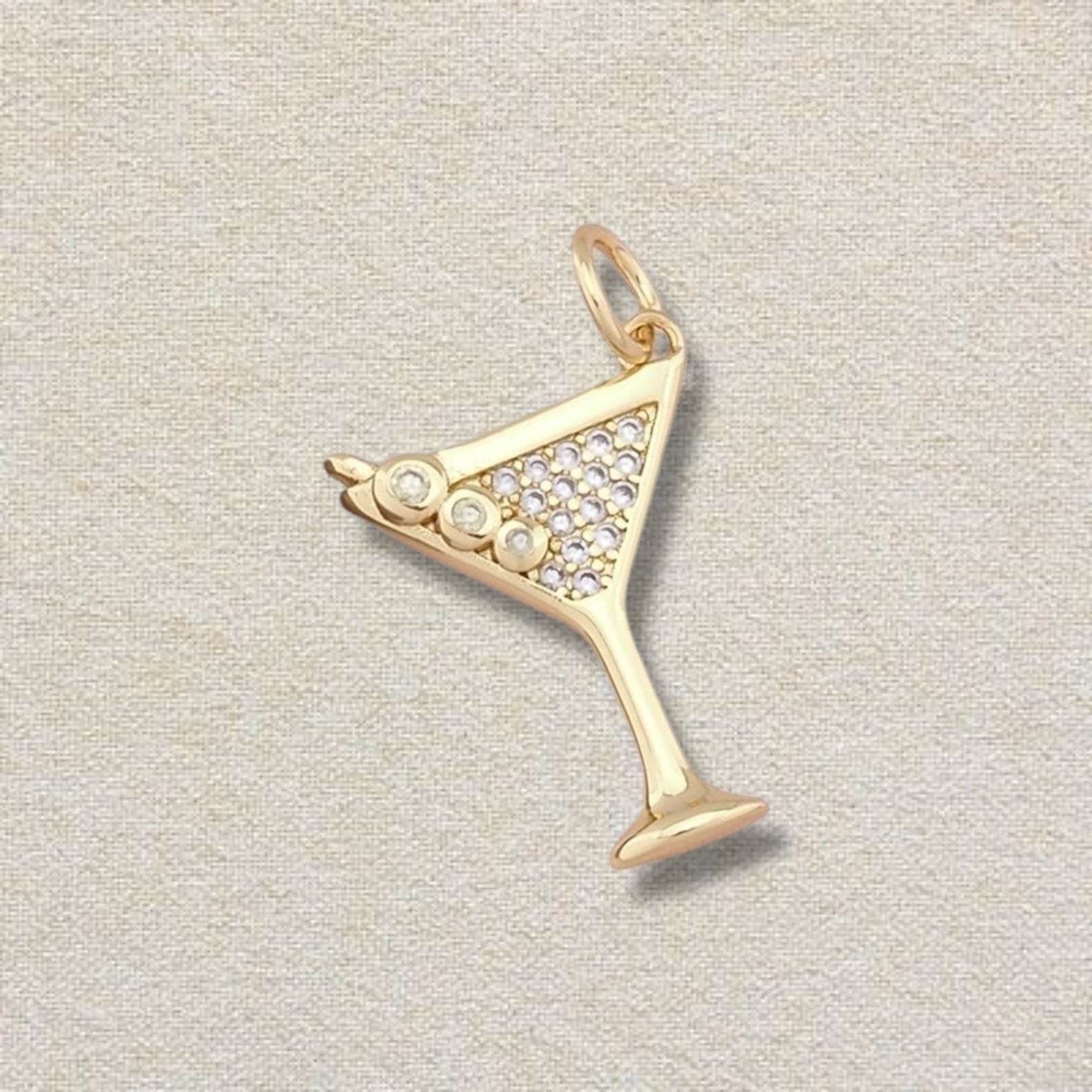 Add a festive touch to your jewelry collection with this glamorous martini glass charm. Crafted with 14k gold plating, this charm sparkles with crystal accents and features adorable "olive" details for a fun, sophisticated vibe. Perfect for celebrating special moments or adding a bit of sparkle to your everyday look, it’s waterproof and tarnish-resistant for lasting shine. Wear it solo or pair it with other charms for a custom look on any bracelet or necklace.