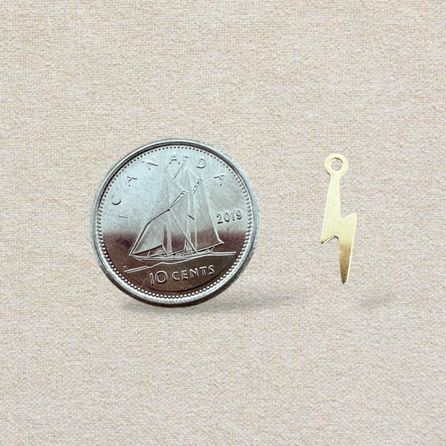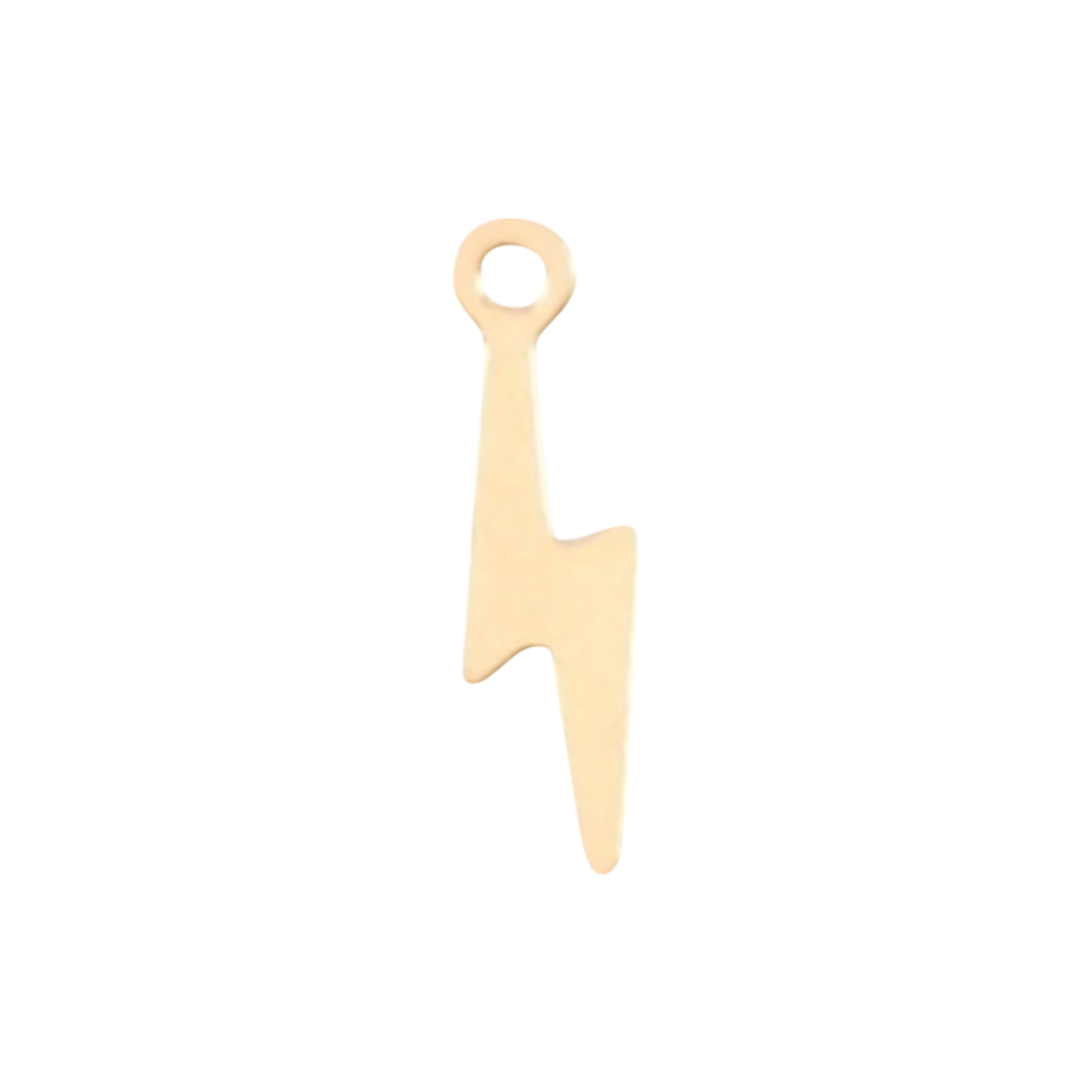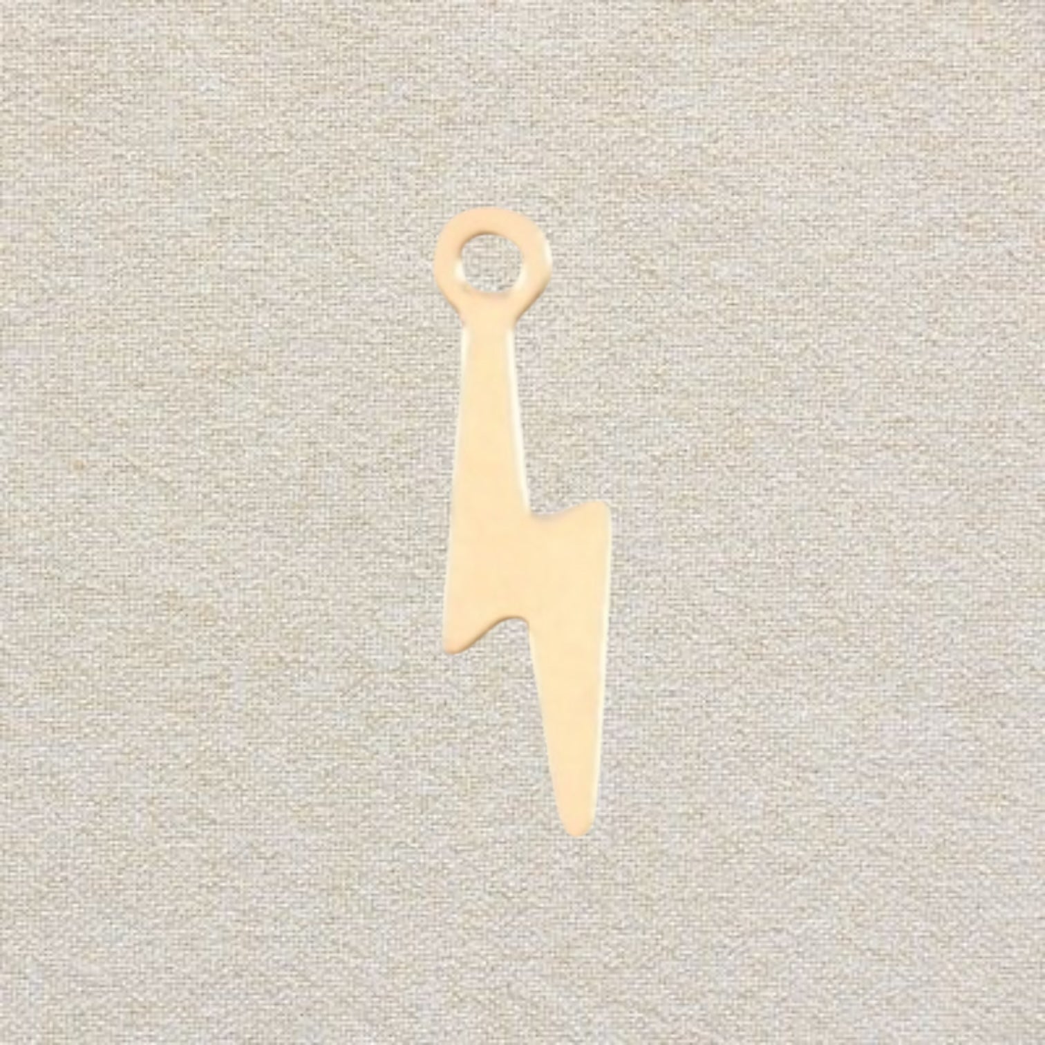 Add a bold, edgy vibe to your jewelry with this sleek gold lightning bolt charm. Crafted with 14k gold plating, this charm is both waterproof and tarnish-resistant, ensuring it stays brilliant through all of life's adventures. Perfect for adding a spark to any bracelet or necklace, this minimalist lightning bolt can be worn solo for a powerful statement or layered with other charms for a custom look.