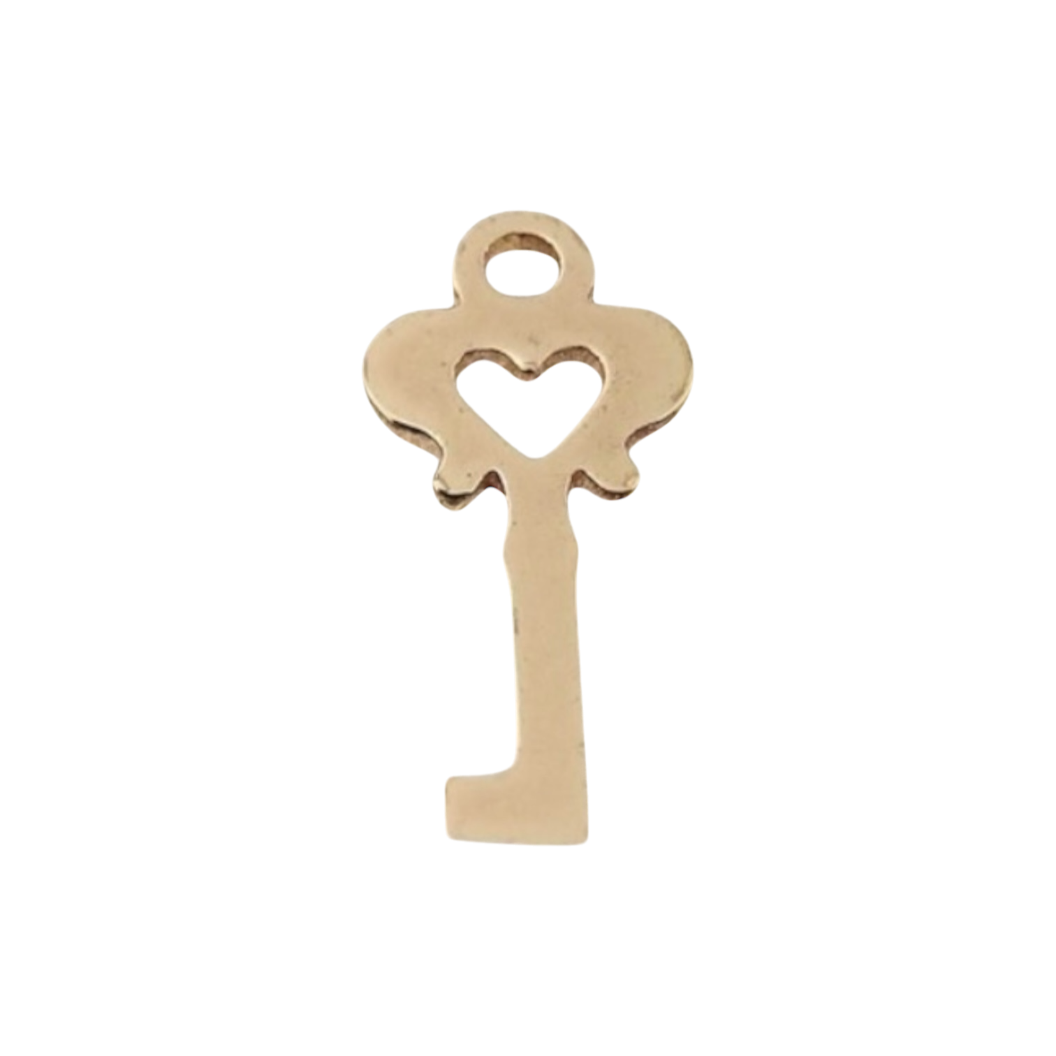 Unlock a touch of romance with this beautiful gold key charm, featuring a delicate heart cutout at the top. Crafted with 14k gold plating, this charm is both waterproof and tarnish-resistant, making it a lasting addition to any bracelet or necklace. Perfect as a symbol of love or as a meaningful piece in your jewelry collection, it can be worn alone or layered with other charms for a unique, personalized look.