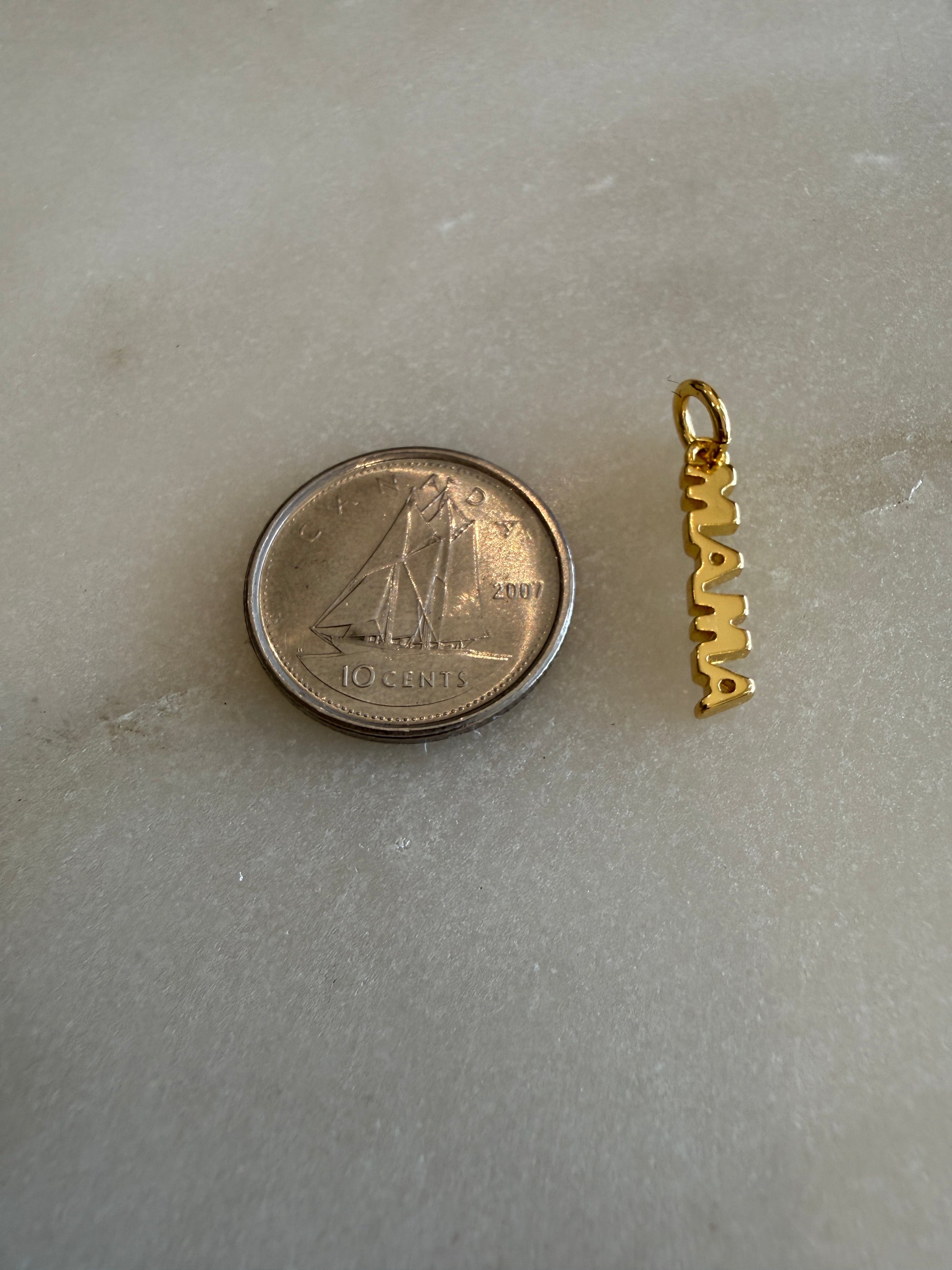 Celebrate motherhood with this beautiful "Mama" charm, crafted in elegant script and plated in 14k gold. This meaningful piece is perfect for moms who want to carry a reminder of their role close to their heart. Waterproof and tarnish-resistant, it’s designed to shine with durability, making it a lasting addition to any bracelet or necklace. Wear it alone for a heartfelt statement or layer it with other charms for a unique, personalized look. Simply add your chosen charms and a chain or bracelet to your cart, and we’ll handle the rest. For a balanced style, we recommend one charm on a beaded bracelet, 3–5 charms on a standard bracelet, or 5–7 charms on a necklace.