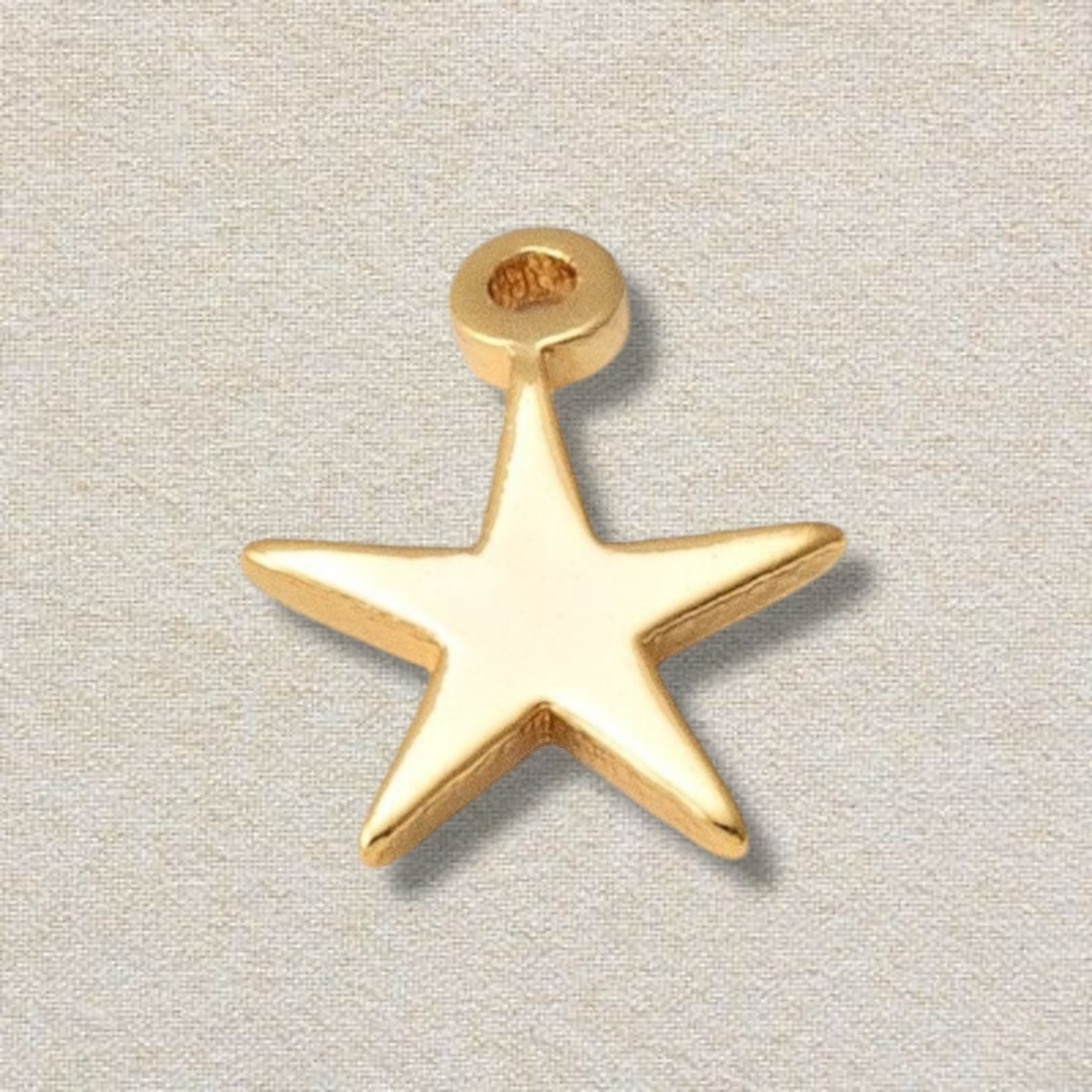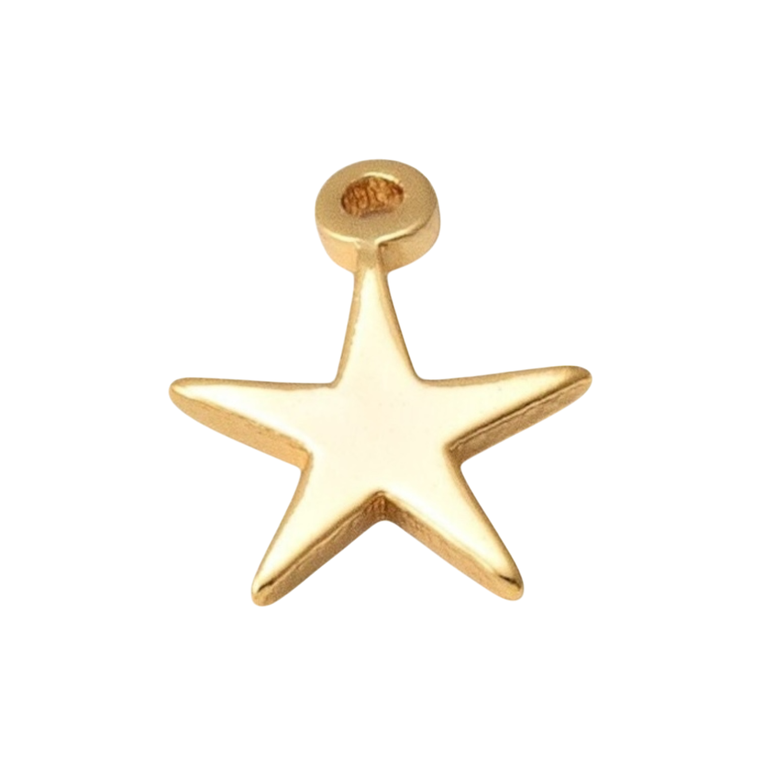 Add a touch of timeless elegance to your jewelry with this classic gold star charm. Crafted with 14k gold plating, this charm has a smooth, polished finish that shines beautifully on any bracelet or necklace. Waterproof and tarnish-resistant, it’s designed to keep its radiant look through everyday wear. Perfect for symbolizing love, it can be worn solo for a simple statement or layered with other charms for a personalized style.