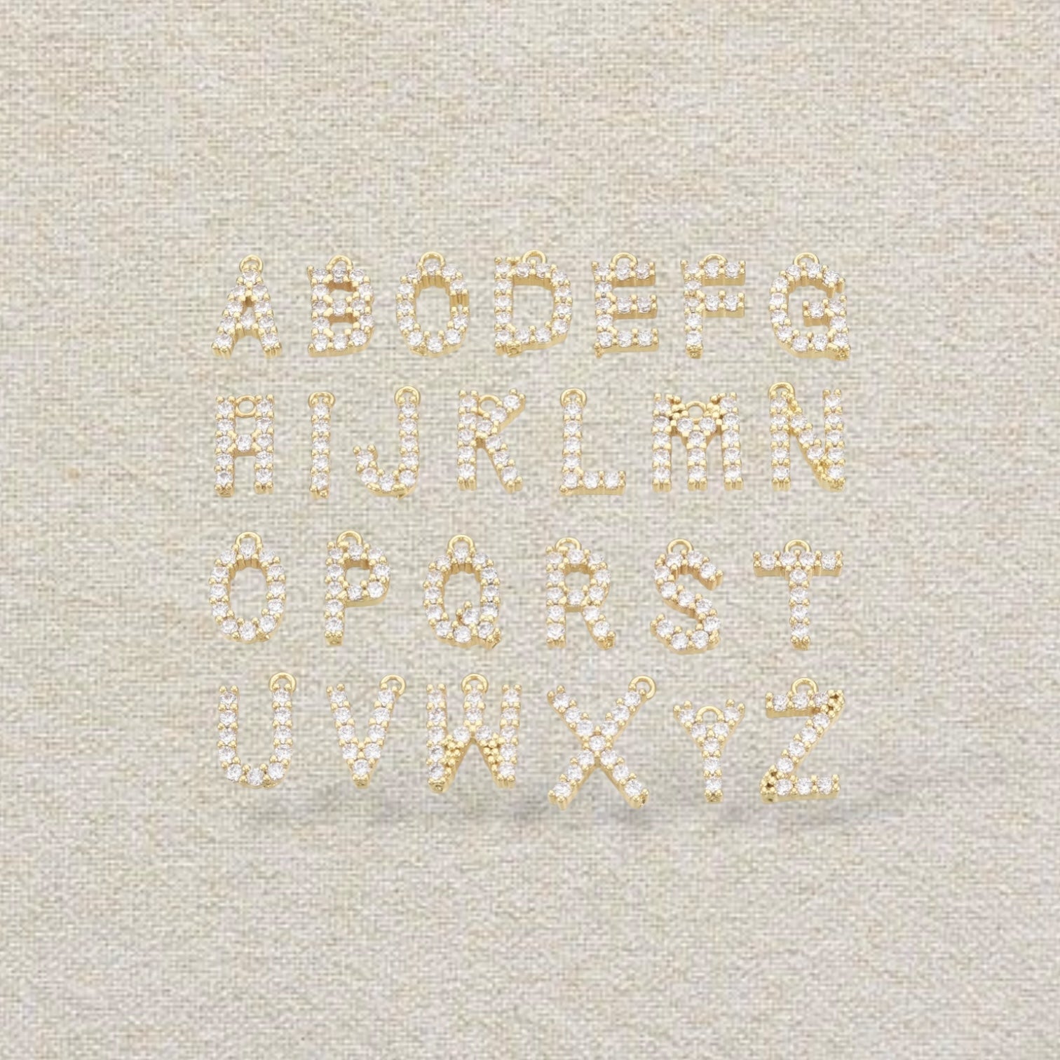 Personalize your jewelry with these dazzling initial charms, each encrusted with crystals to add sparkle and sophistication. Crafted in 14k gold plating, these letter charms are both waterproof and tarnish-resistant, ensuring they maintain their shine with everyday wear. Choose any letter to represent your name, a loved one, or even spell out meaningful words on your bracelet, necklace, or anklet. Perfect for layering or combining with other charms, these initial charms add a unique and meaningful touch to your jewelry collection.
