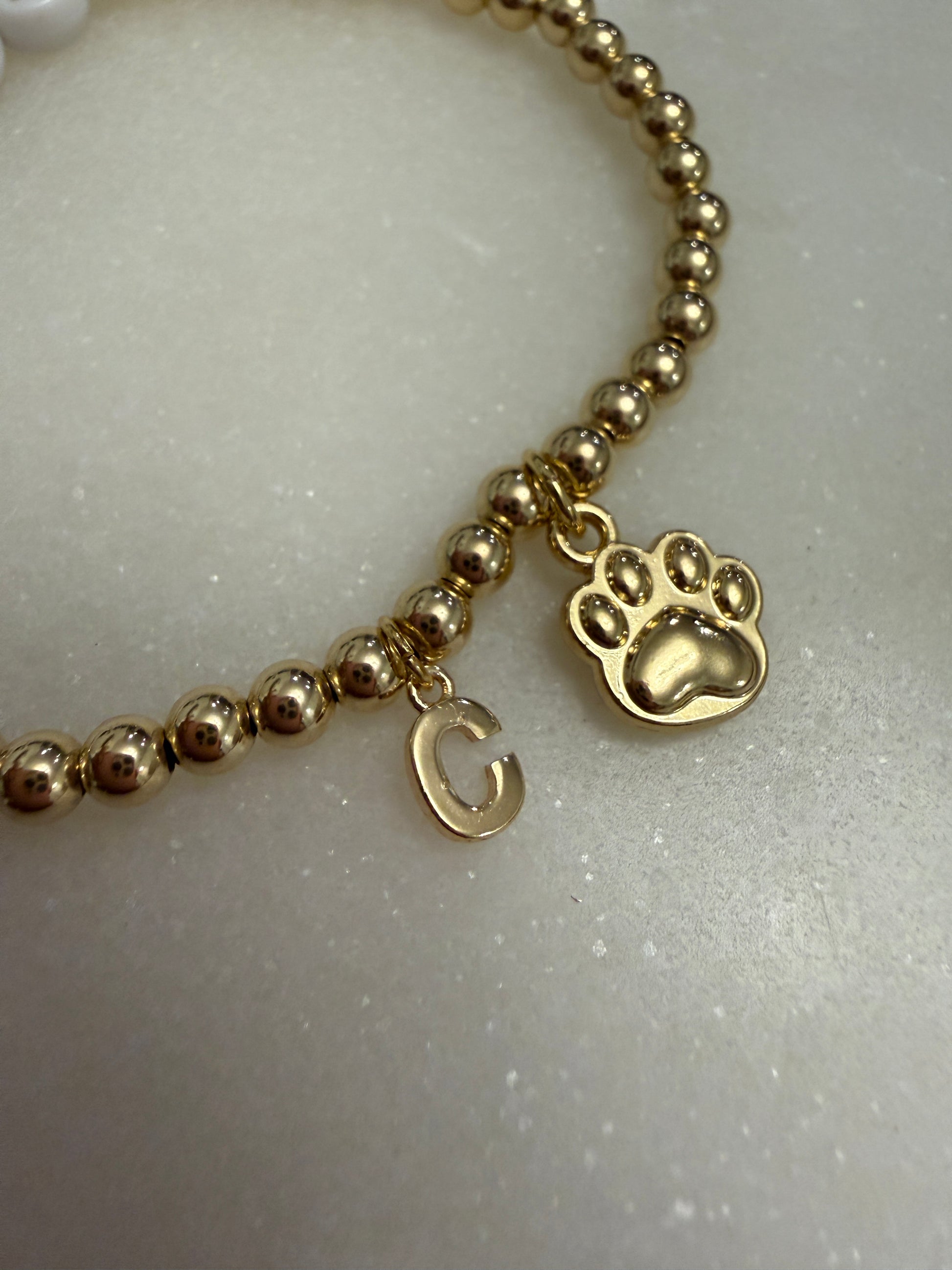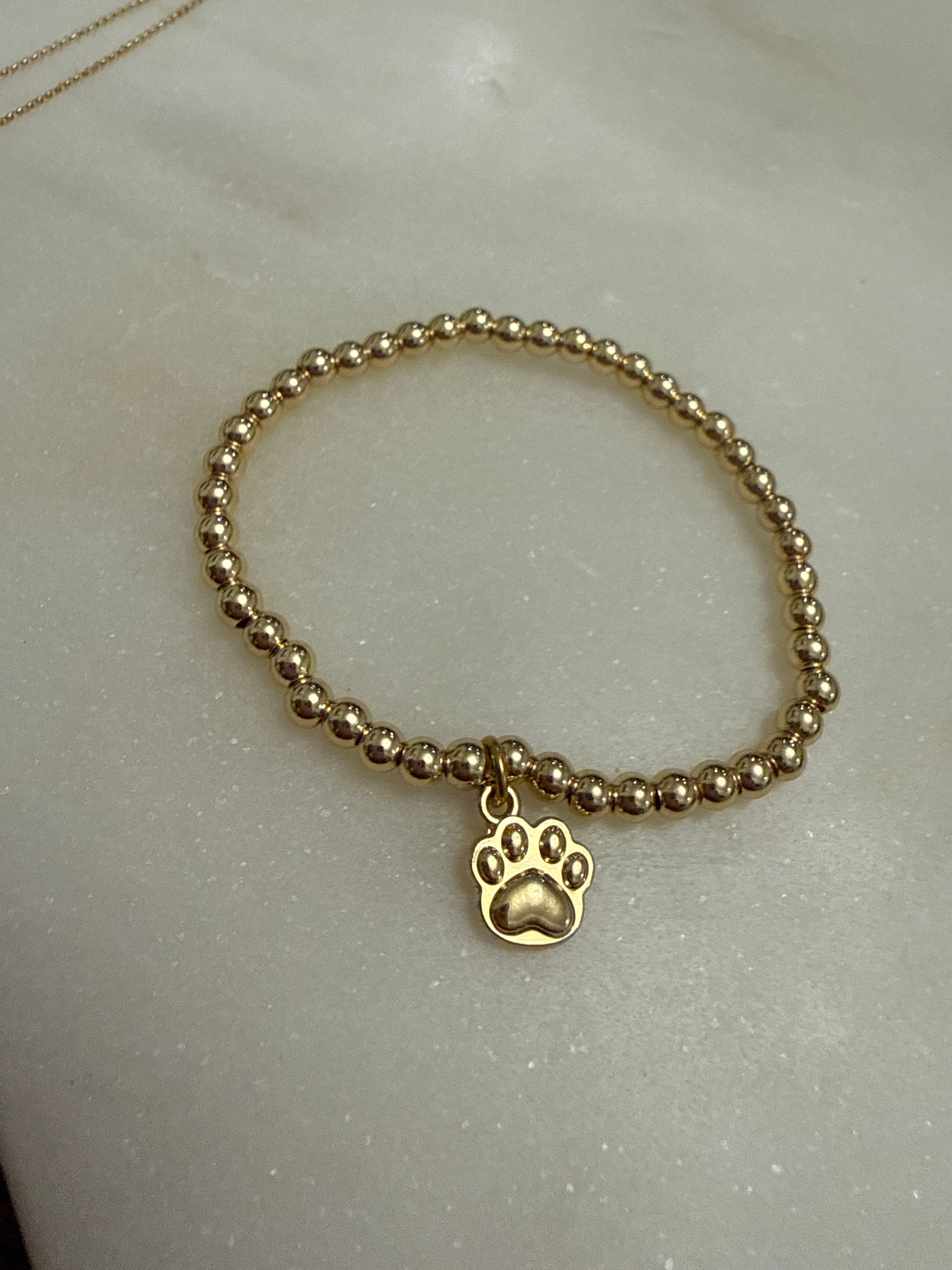 Our signature gold-filled beaded bracelet gets a heartwarming twist β featuring a gold paw charm that celebrates the bond between you and your pet.
