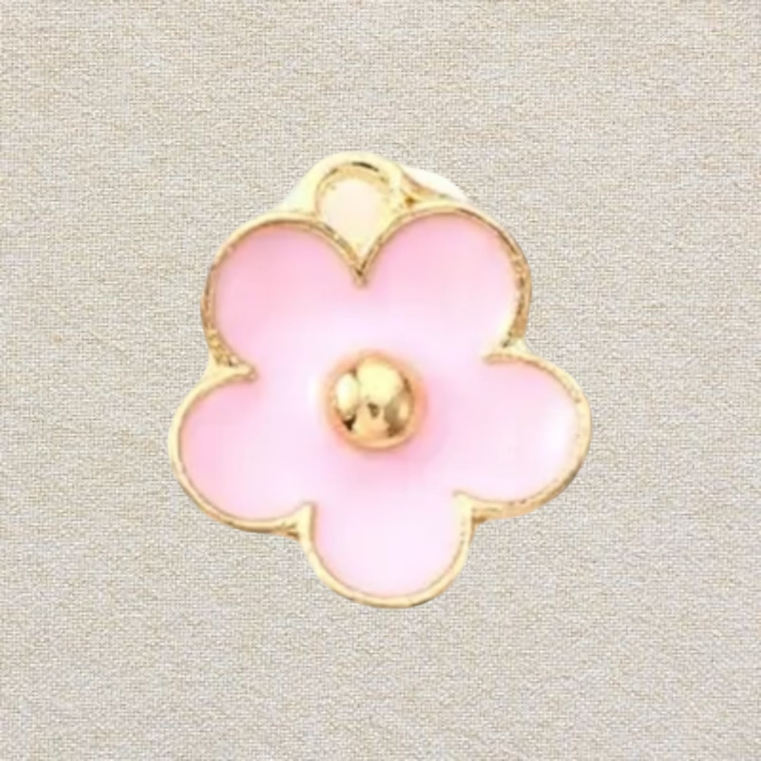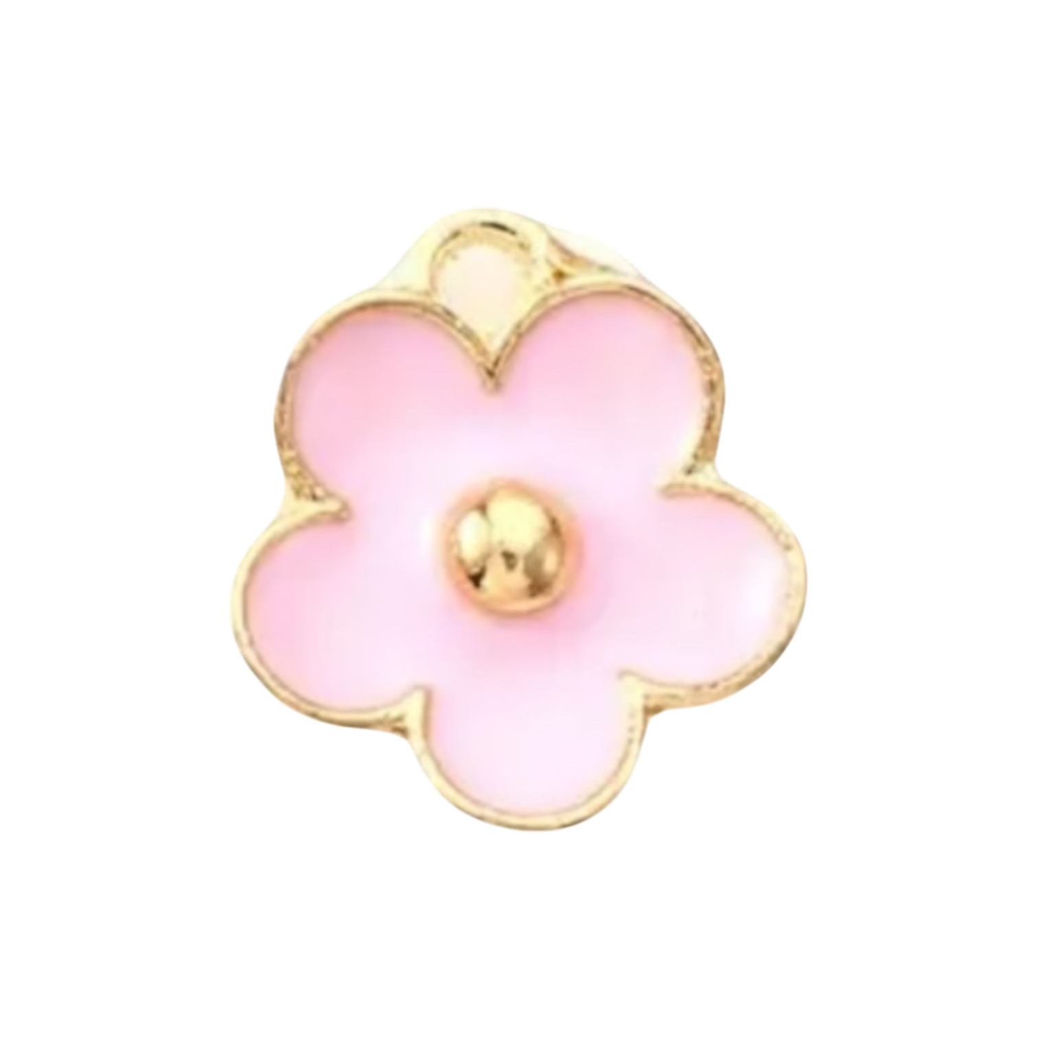 This adorable pink flower charm adds a soft, playful touch to any jewelry piece. With a light pink enamel finish and a 14k gold-plated center, this charm is both sweet and stylish. Waterproof and tarnish-resistant, it's perfect for daily wear on a bracelet, necklace, or anklet. Add it as a lovely accent to your collection or layer it with other charms for a fresh, floral-inspired look.
