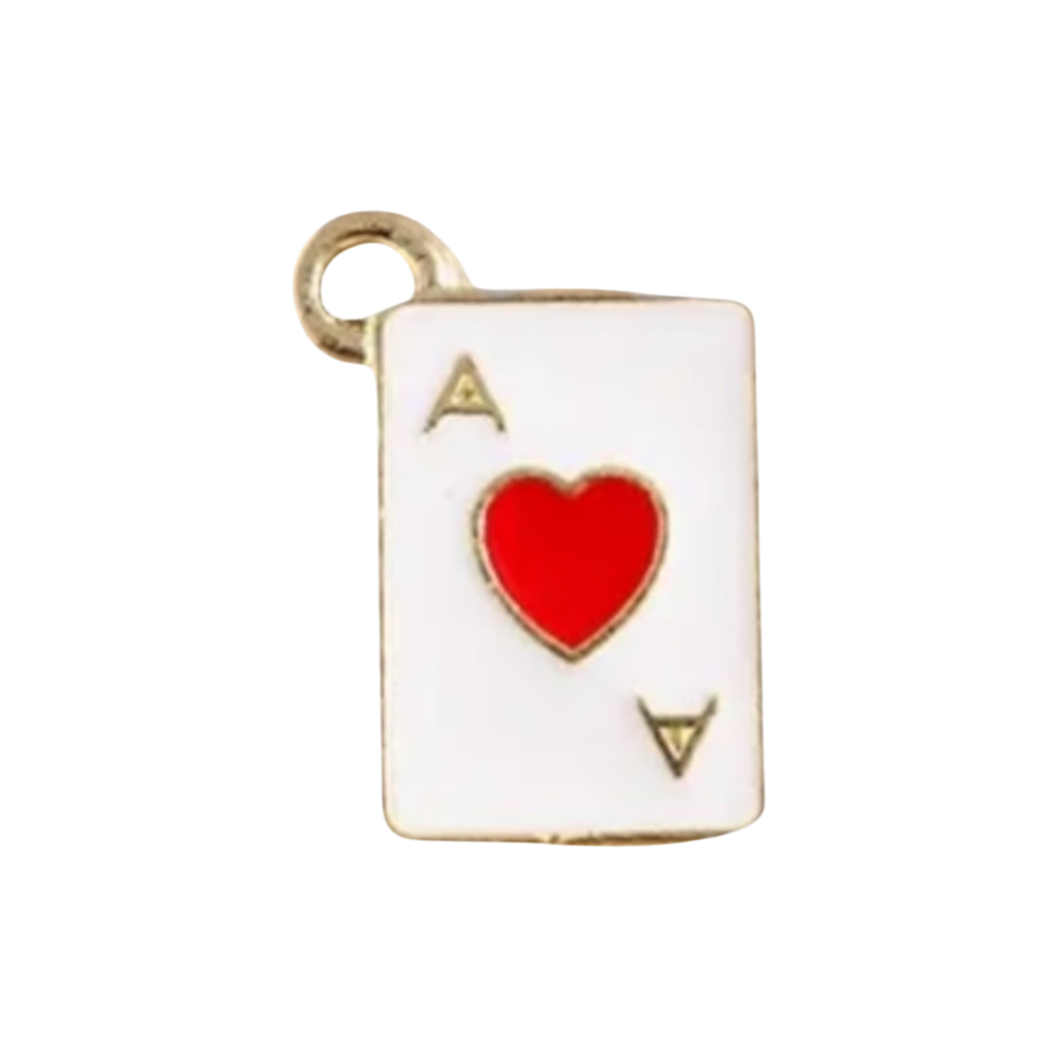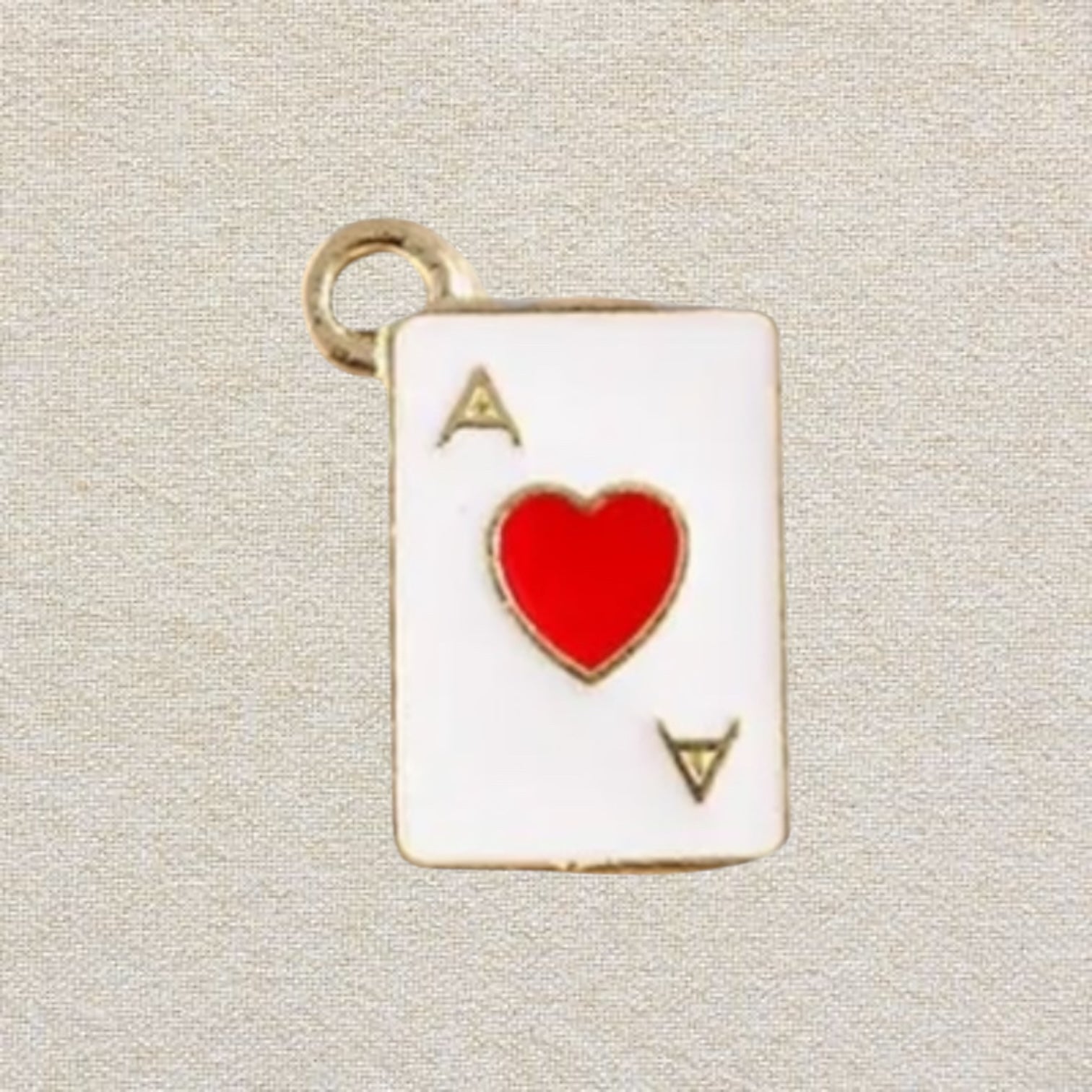 Bring a bold statement to your jewelry with this Ace of Hearts charm, crafted in 14k gold and featuring a sleek enamel finish. Perfect for wearing solo or layering with other charms, this unique piece adds a hint of daring style to any bracelet or necklace.