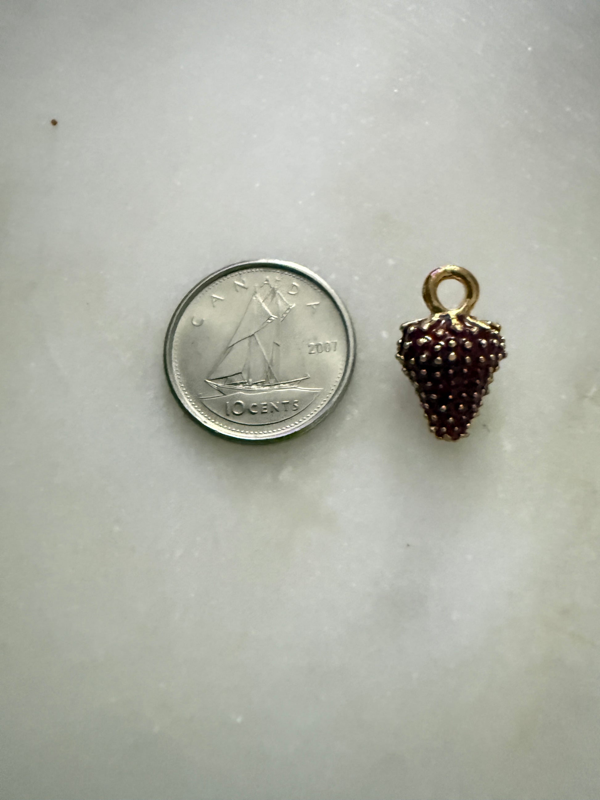 This sweet strawberry charm adds a fun, fruity flair to any jewelry piece. With vibrant red enamel for the strawberries and green for the leaves, all set in 14k gold plating, this charm brings a pop of color and whimsy to your collection. Waterproof and tarnish-resistant, it's perfect for everyday wear on a bracelet, necklace, or anklet. Wear it solo for a playful statement, or pair it with other charms for a vibrant, personalized look.