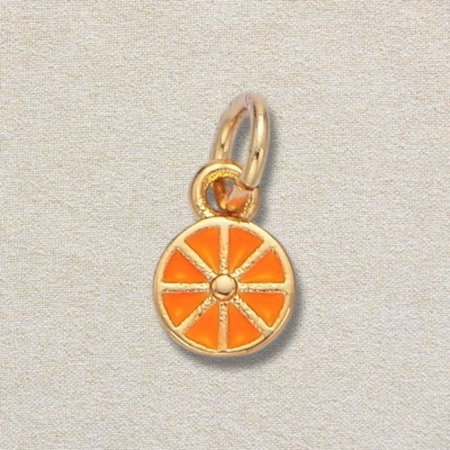 Add a vibrant touch to your jewelry collection with this refreshing gold citrus slice charm. Featuring a sparkling yellow gemstone as the "citrus" and a small green leaf accent, this charm brings a fun, summery feel to any bracelet or necklace. Crafted with 14k gold plating, it’s waterproof and tarnish-resistant, ensuring long-lasting shine and durability. Wear it solo for a pop of color or pair it with other charms for a playful, personalized look. Simply add your selected charms and a chain or bracelet to your cart, and we’ll handle the rest. For a balanced style, we recommend one charm on a beaded bracelet, 3–5 charms on a standard bracelet, or 5–7 charms on a necklace.