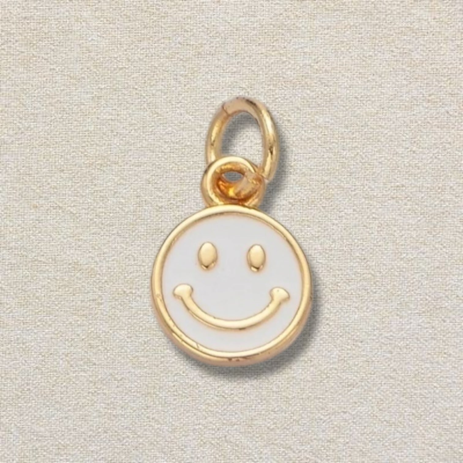 Brighten up your jewelry collection with this vibrant smiley face charm. Crated with a glossy white enamel plating, this charm is both playful and durable. These waterproof and tarnish-resistant charms are perfect for adding a cheerful pop of happiness to any bracelet, necklace, or anklet.